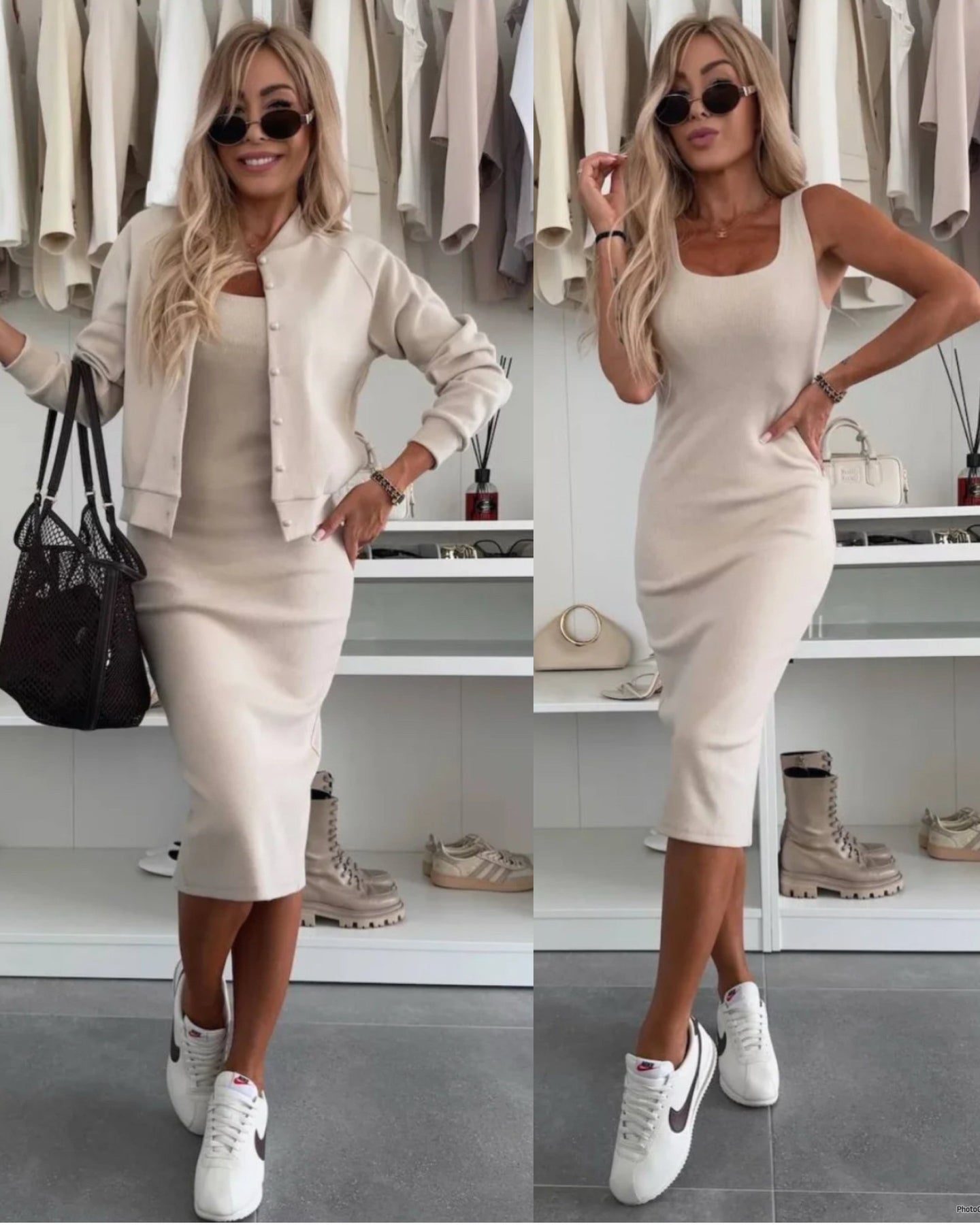 Karin™ | Robe midi en maille côtelée & ensemble bomber